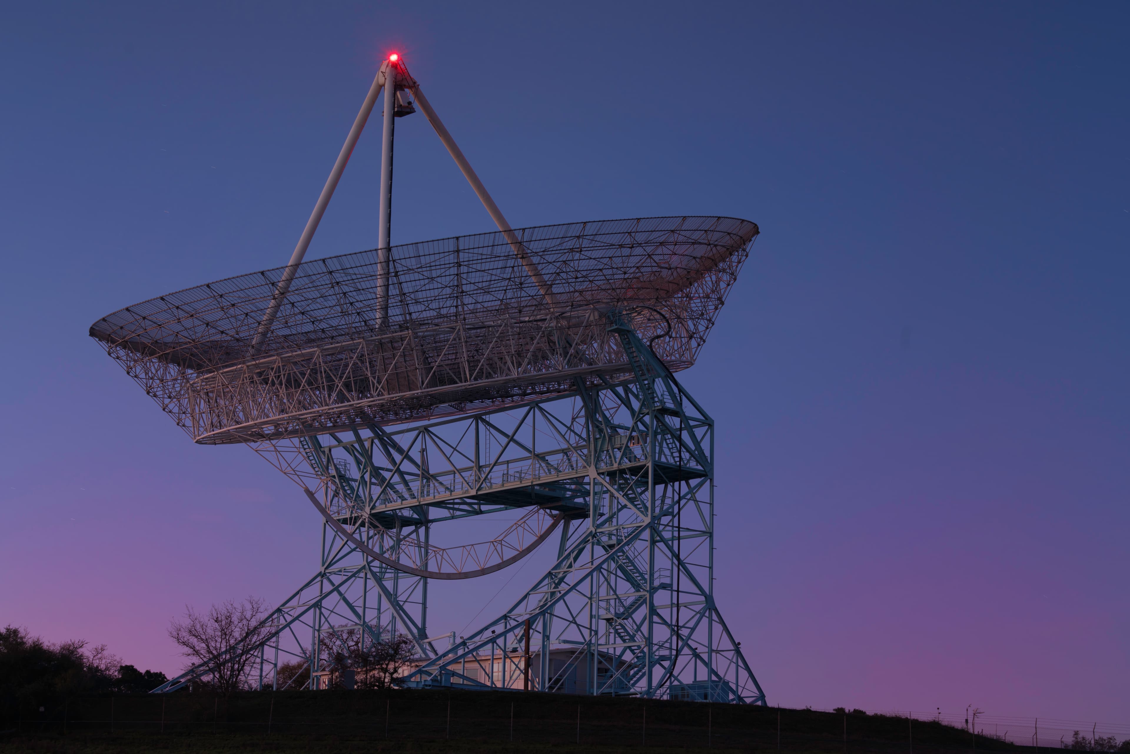 The message transmits at 423 MHz. 30 kilowatts of power. Traveling at the speed of light.