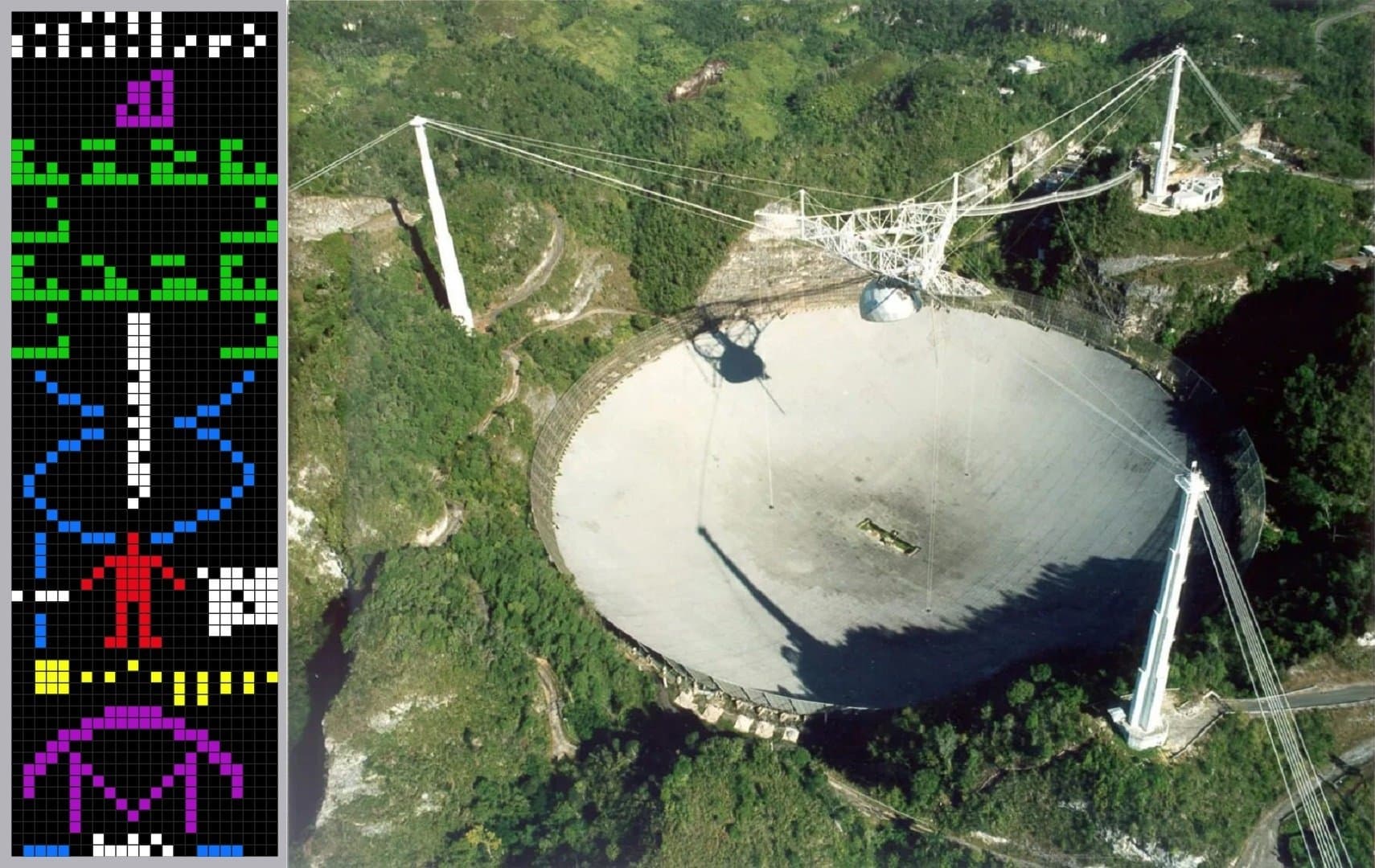 1,679 binary digits beamed toward a star cluster 25,000 light years away.